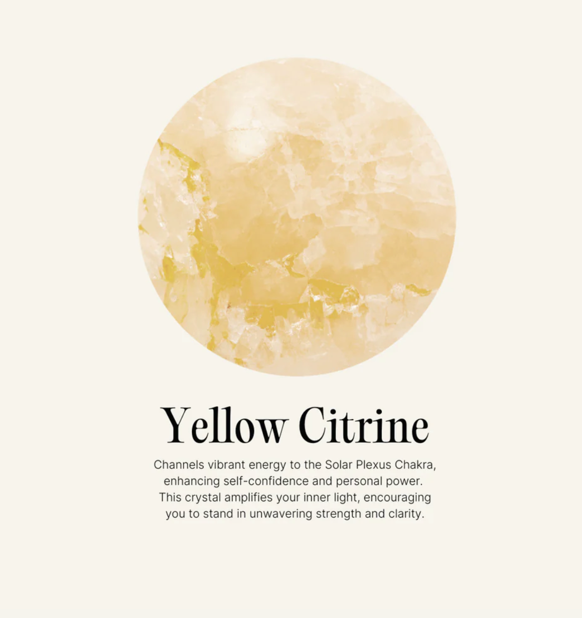 Yellow Citrine channels vibrant energy to the Solar Plexus Chakra, enhancing self-confidence and personal power. This crystal amplifies your inner light, encouraging you to stand in unwavering strength and clarity.