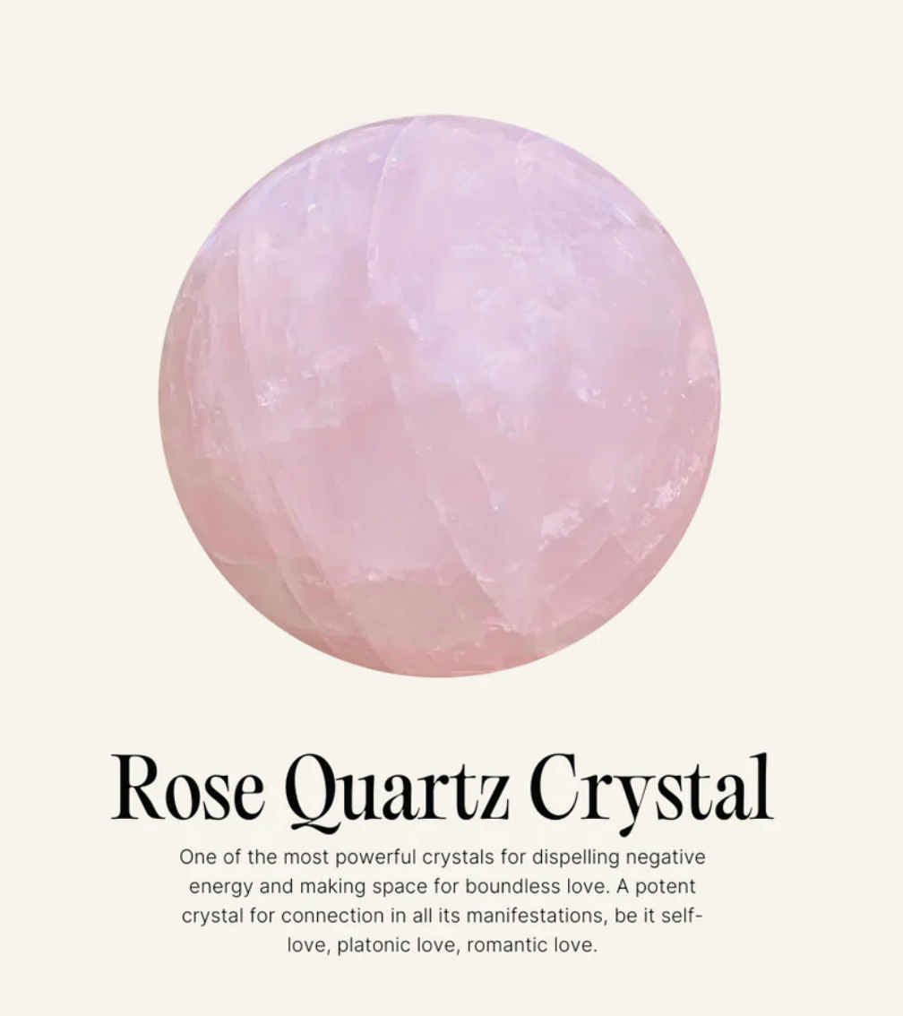 Rose Quartz is one of the most powerful crystals for dispelling negative energy and making space for boundless love. A potent crystal for connection in all its manifestations - be it self love, platonic love, or romantic love. The peace enhancing crystal restores trust and harmony to your most important relationships.